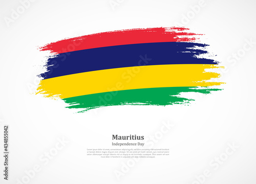 Fototapeta premium Happy independence day of Mauritius with national flag on grunge texture