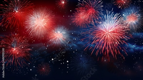 Naklejka premium Happy Independence day, 4th July national holiday. Festive confetti sparkles and stars blue and red patriotic celebration