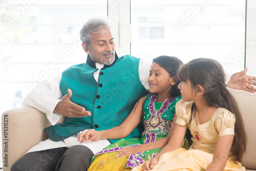 © WONG SZE FEI, Obraz premium Happy Indian parent and children