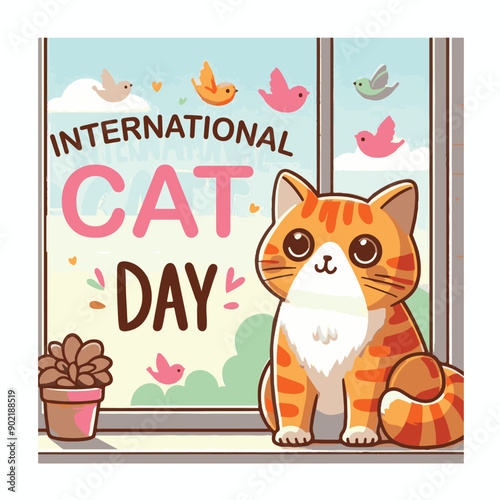 © MdMahiuddin, Naklejka premium Happy International Cat Day color vector art