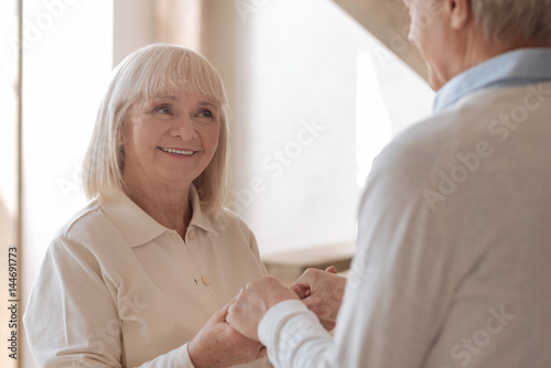 Obraz premium Happy joyful woman looking at her husband