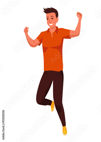 © the8monkey, Fototapeta premium Happy jumping people. Happy positive young men. Young joyful laughing people jumping with raised hands isolated on white background