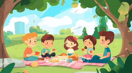 Fototapeta premium happy kids picnic in the park