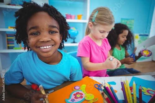 © WavebreakmediaMicro, Fototapeta premium Happy kids using modelling clay together