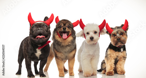 Fototapeta premium 4 happy little dogs celebrating halloween