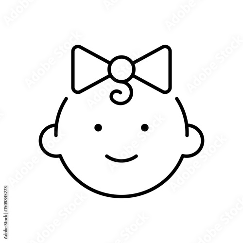 © Fourdoty, Obraz premium Happy little girl head icon. Simple outline style. Line symbol isolated. Face of baby girl.