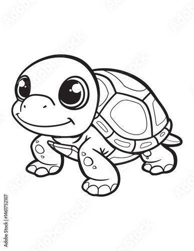 © Saeid, Fototapeta premium Happy Little Turtle – Kawaii Reptile Coloring Page