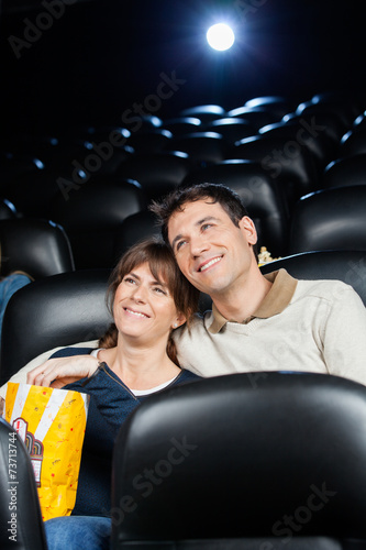 Fototapeta premium Happy Loving Couple Watching Film In Theater