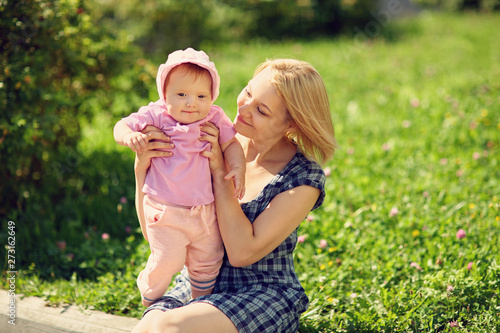 Fototapeta premium happy loving mother and her baby outdoors. Child and mom