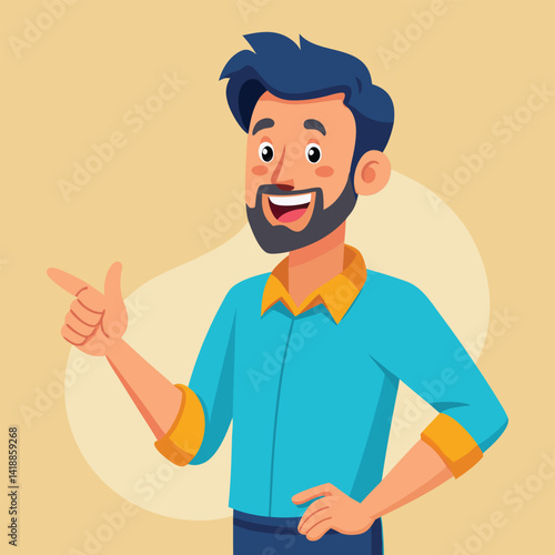 © MDSIAM, Obraz premium Happy man pointing into a blank copy space spot with two hands