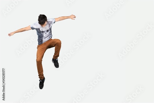 Fototapeta premium Happy man run or jump on background.