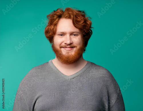 © Ranta Images, Fototapeta premium Happy Man Smiling Against Colorful Studio Background