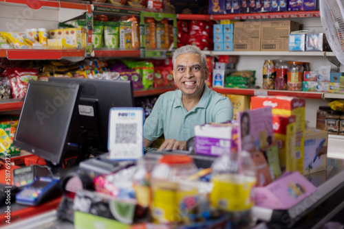 © G-images, Naklejka premium Happy man working as a cashier at supermarket