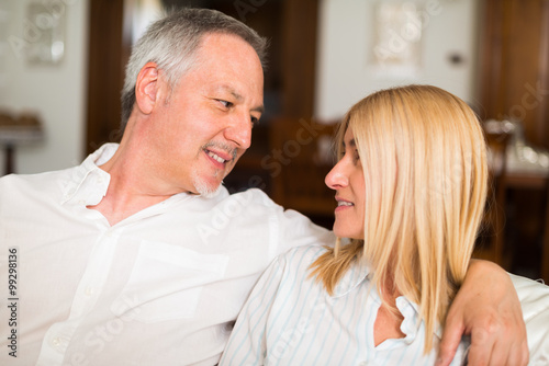 Obraz premium Happy mature couple talking in their home