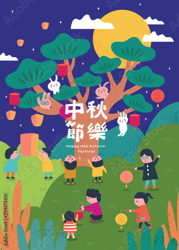 Naklejka premium Happy Mid Autumn Festival. Chinese Text Means Happy Mid Autumn Festival