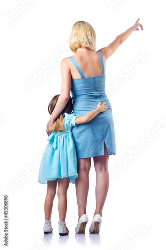 © Elnur, Fototapeta premium Happy mom and daughter on white