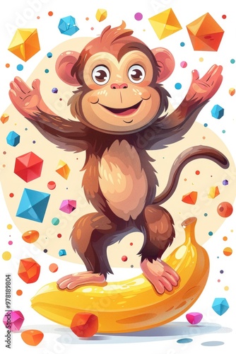 © GOLVR, Obraz premium Happy Monkey Riding a Banana