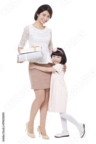 Fototapeta premium Happy mother and daughter with gift box