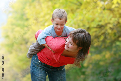 © Alena Yakusheva, Fototapeta premium happy mother playing with son outdoors