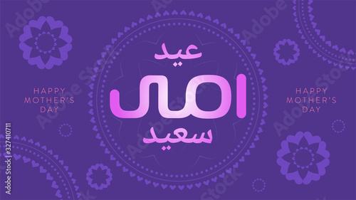 © iniaz, Fototapeta premium Happy Mother's Day Greeting Vector Illustration for any design with arabic calligraphy, in english is translated happy mothers day