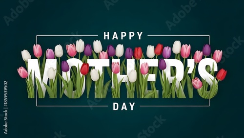© Abdul Hamid, Fototapeta premium Happy mother's day greeting with colorful tulips