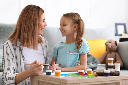 Fototapeta premium Happy mother with daughter painting at home