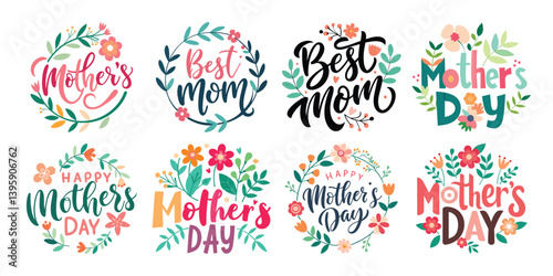Fototapeta premium Happy Mothers Day Calligraphy Text Set Vector Illustration with Floral...