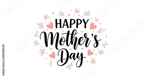 © FARJANAAKTER, Naklejka premium Happy mothers day text with hearts and flowers isolated on white background