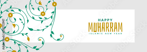 Fototapeta premium happy muharram banner with arabic pattern design