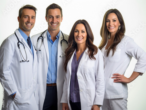© Svetlana Zayats, Fototapeta premium happy multiracial medical professionals standing in the studio with white background, group portrait, AI generative