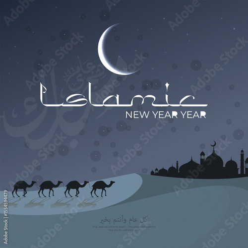 © creative shark, Fototapeta premium Happy New Hijri year, Arabic calligraphy. Islamic New Year greeting card. Translate from Arabic: Happy New Hijri year