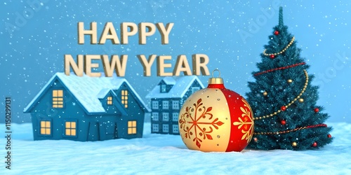 Fototapeta premium Happy New Near 2025 text -Christmas Ornament Abstract New Concept Winter...