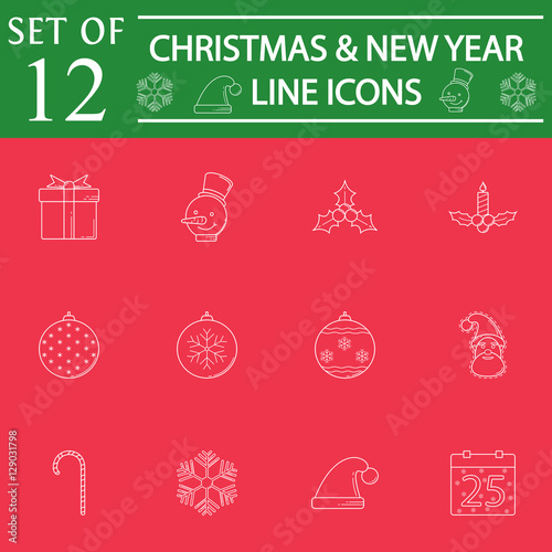© amin268, Fototapeta premium Happy New Year and Christmas line pictograms package, 2016 symbols collection, vector sketches, logo illustrations, colorful linear icons isolated on white background, eps 10.
