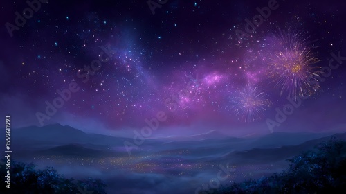 © HORA STUDIO, Fototapeta premium Happy New Year Background with aurora