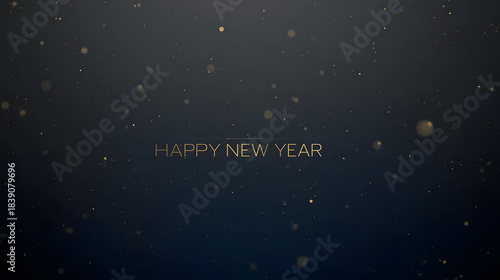 Fototapeta premium Happy New Year background with dark gradient (charcoal to deep blue), subtle gold particles, premium minimal luxury style