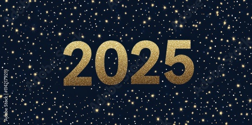 © Nipattha, Fototapeta premium Happy new 2025 year background with golden elements. Holiday winter greeting banner