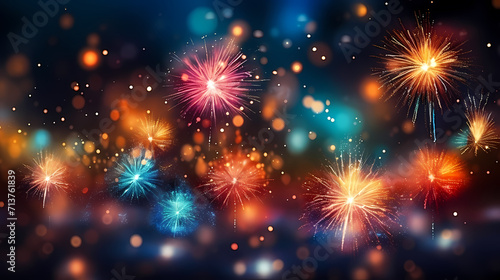 © jiejie, Fototapeta premium Happy New Year, burning fireworks with bokeh light background