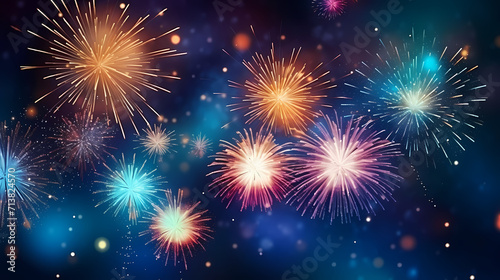 © cai, Fototapeta premium Happy New Year, burning fireworks with bokeh light background