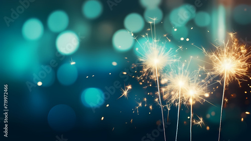 Obraz premium Happy New Year, burning fireworks with bokeh light background