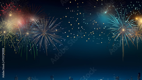 © xuan, Naklejka premium Happy New Year, burning fireworks with bokeh light background
