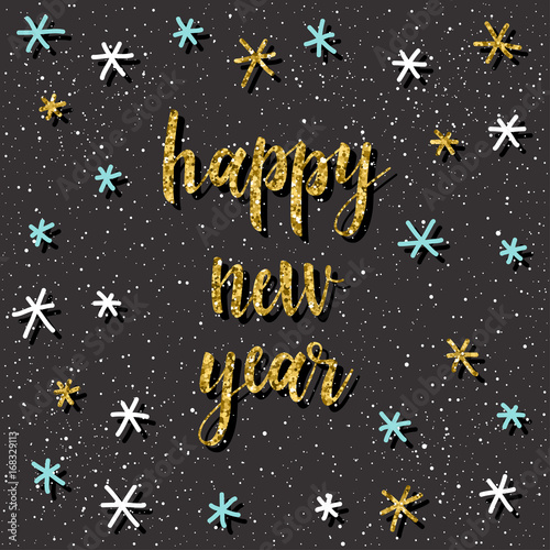 Naklejka premium Happy new year card. Handwritten quote and handmade doodle snowflake pattern