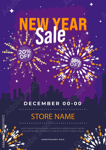 © piximvect, Naklejka premium Happy New Year Celebration Flyer Design Template for Party, Event, Countdown & Holiday Promo