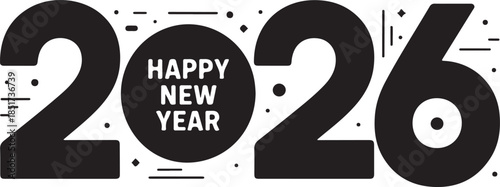 © Ranaart, Obraz premium Happy new year 2026 celebration with festive confetti and bold typography on a white background