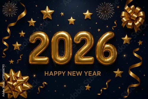 Fototapeta premium Happy New Year 2026 Celebration with Golden Numbers and Confetti