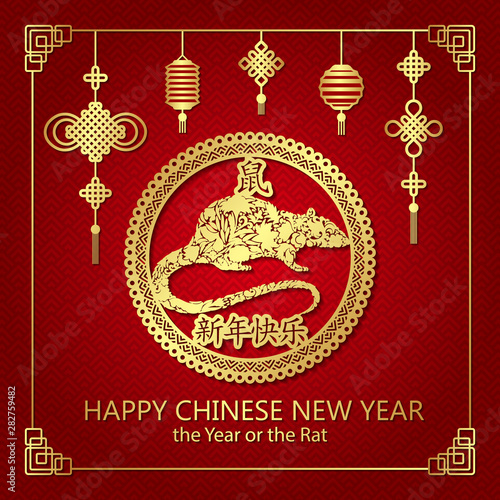Naklejka premium Happy new year, 2020, Chinese new year greetings, Year of the Rat , fortune.