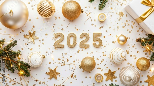 Fototapeta premium Happy New Year 2025 Christmas decorations on white background