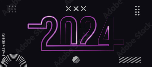 Fototapeta premium 2024 Happy New Year clock countdown background. Gold glitter shining in light with sparkles abstract celebration. Greeting festive card vector illustration. Merry holiday poster or wallpaper design