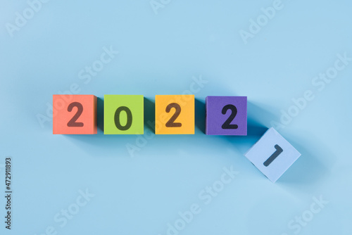 © zhikun sun, Obraz premium happy new year 2022 colorful cube on blue background