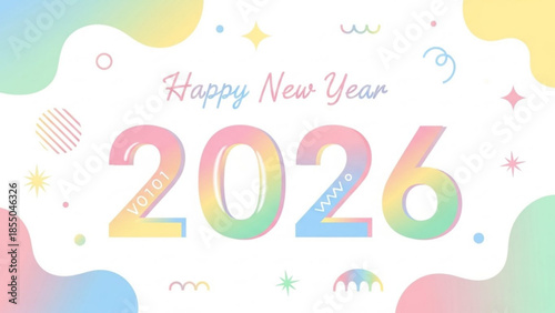 © Attaul, Fototapeta premium Happy new year 2026, colorful gradient numbers and festive decorations on white background