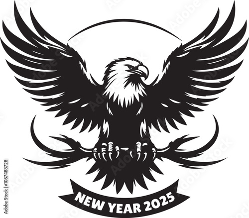 © pallab, Obraz premium Happy New Year 2025 Eagle bird silhouette vector design.